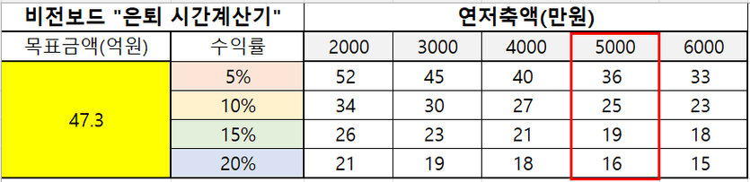 STEP4. 수익률에 따른 은퇴 가능 나이