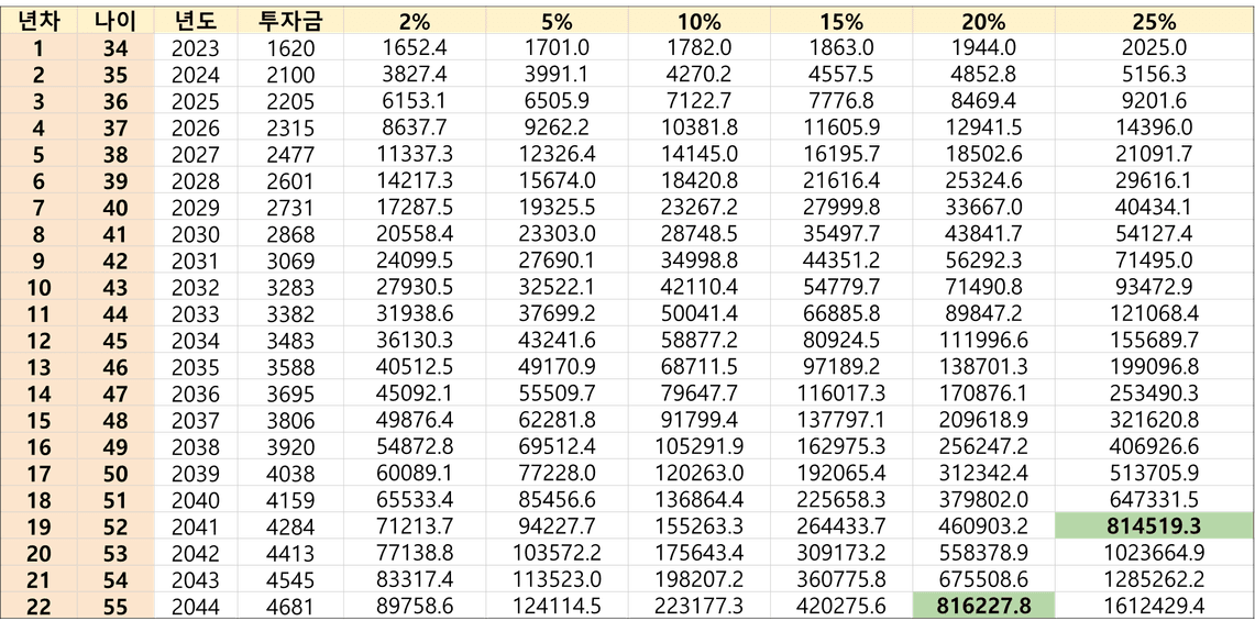 20% 수익률을 달성하면 55세 은퇴가능!!! 그 이상 수익률 달성시 더 빨라질 수 있다!!
