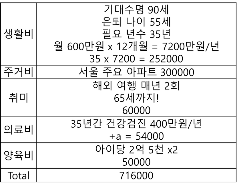- 은퇴후 35년간 월 600만원씩 쓴다면? 25.2억이 필요!