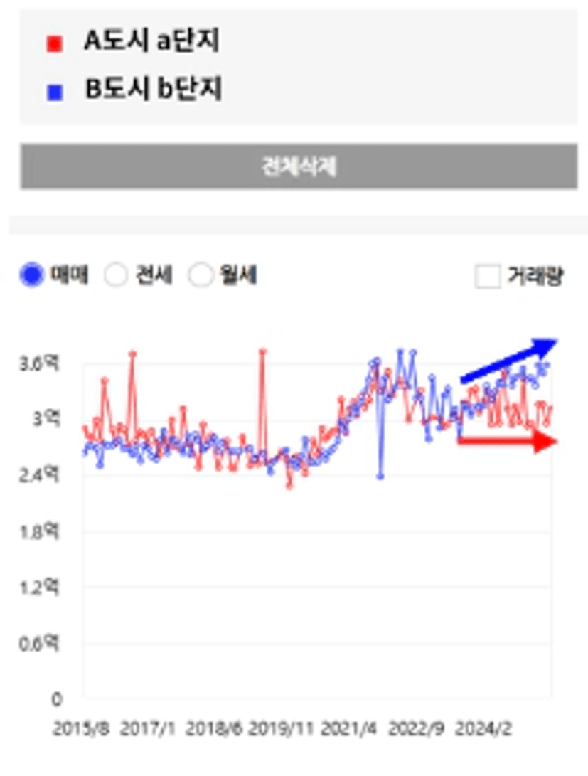 아직 매매가격이 보합하고 있는 a 단지인데요