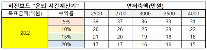 목표금액 28.2억, 현재 나이 30세 연저축액 2700~3000만원