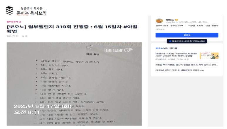 또한 동료가 꾸준히 하고 있는 아침 확언 루틴을 보여드리면서 긍정적이고 할 수 있다느