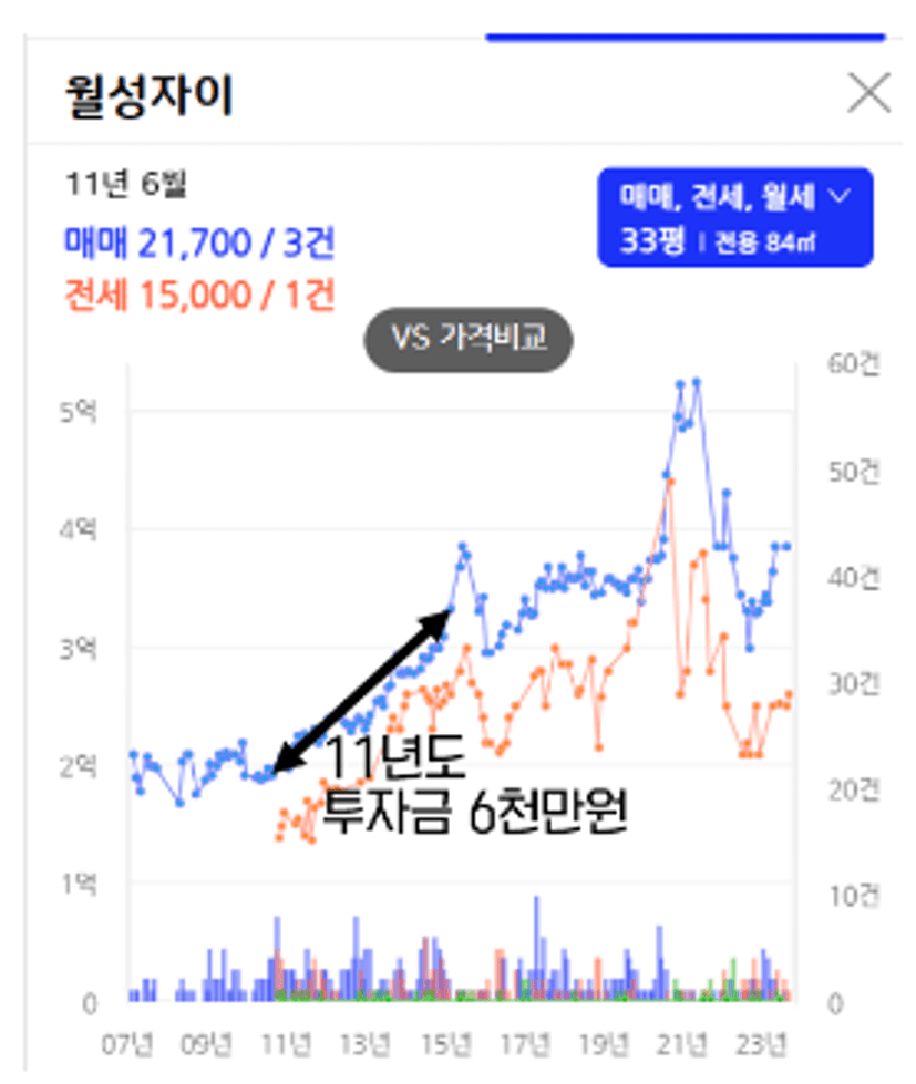 비교적 투자금을 줄여 6천만원 금액 매매2.1억/전세1.5억 으로