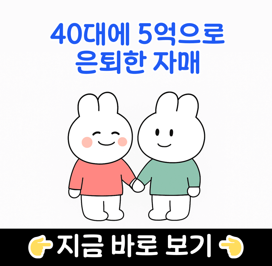 끝으로 여기, 실제 40대에 5억으로 은퇴한 자매가 있습니다.