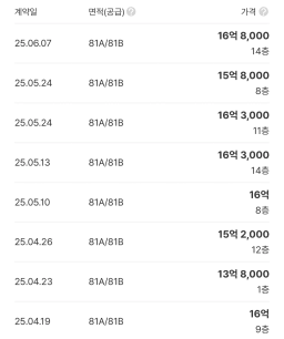 현재 고려 중인 아파트는 아래와 같습니다