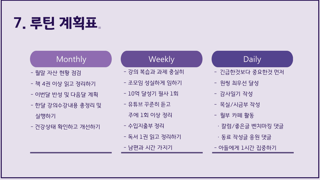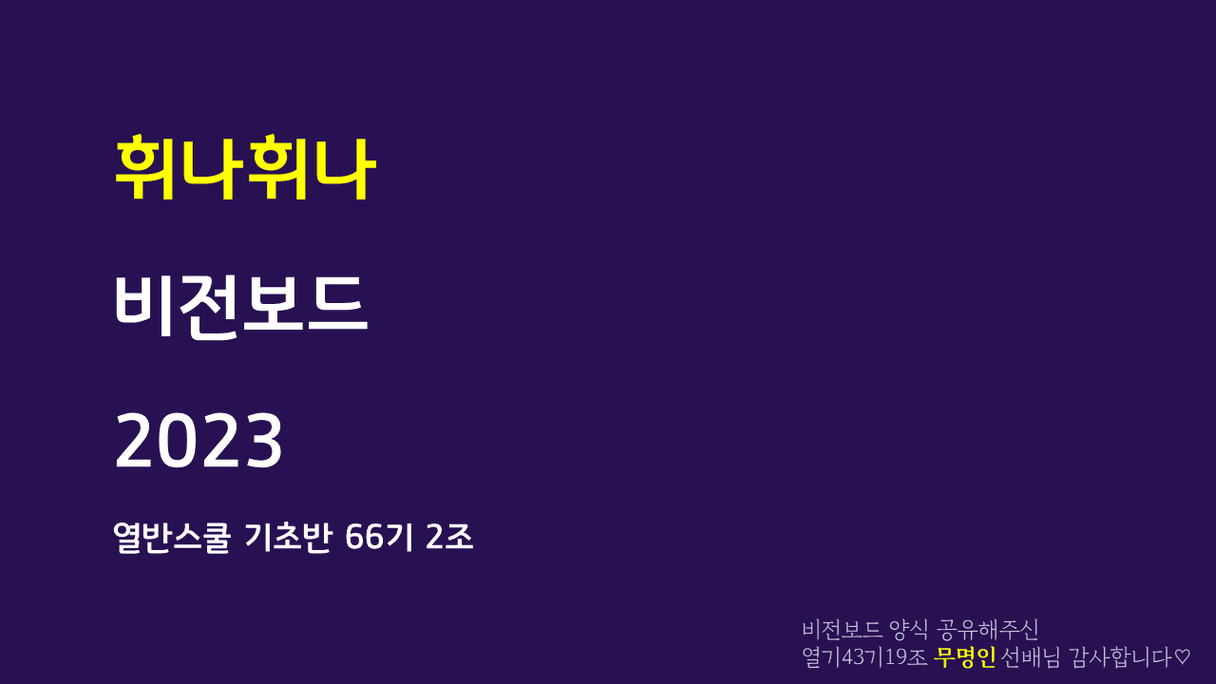 휘나님의 깔끔한 비전보드 잘 보았습니다. 앞으로 비전보드 대로 모두 이뤄나가길 응원합니다.👍👍