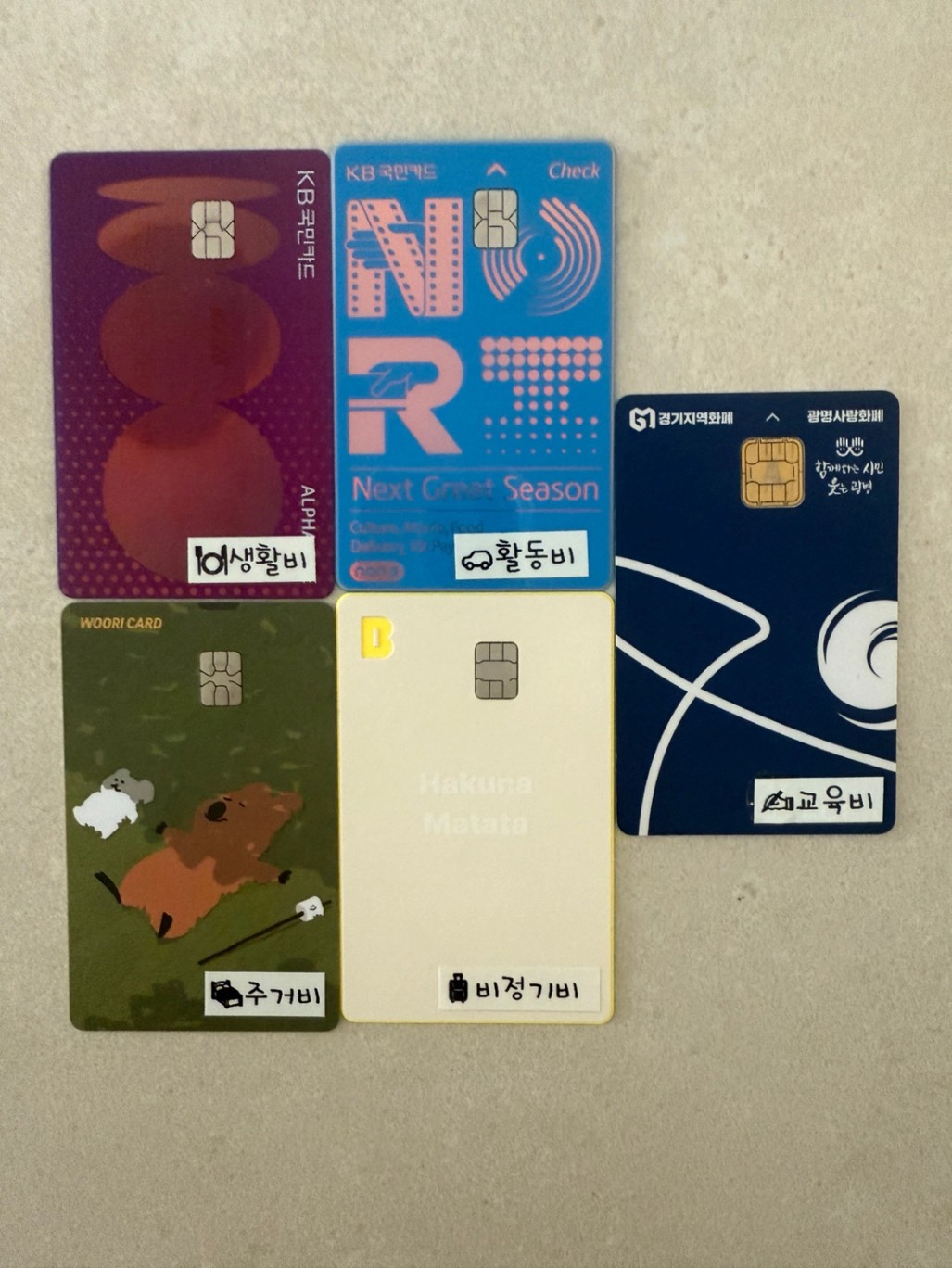 1. 용도별로 나눈 카드 인증샷 (모바일 통장쪼개기 인증샷도 좋아요!)