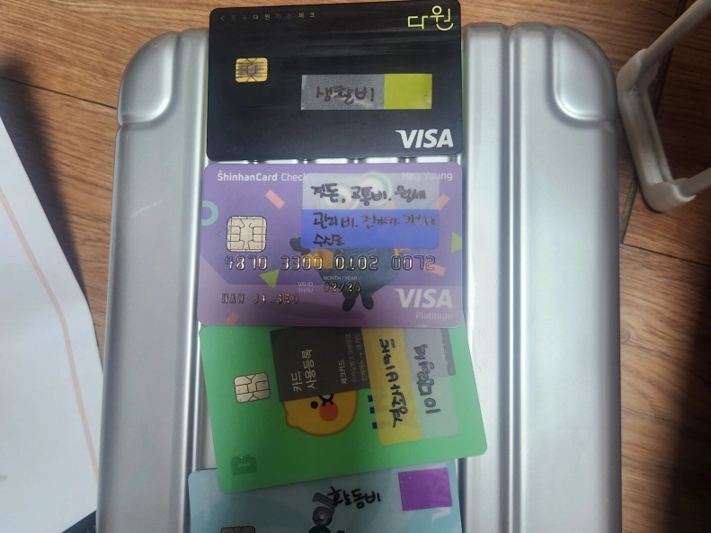 1. 용도별로 나눈 카드 인증샷 (모바일 통장쪼개기 인증샷도 좋아요!)