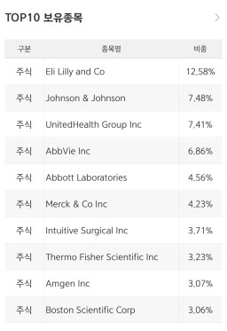 과제2: 섹터별 top10 종목 및 배당금 정보 찾기(헬스케어)