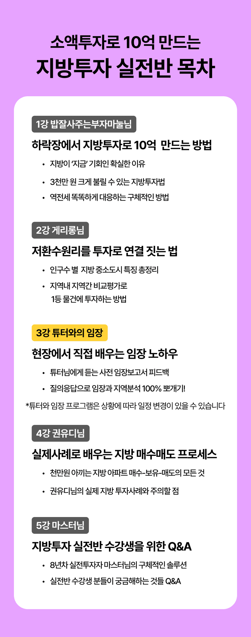 튜터링, 임장 등 온오프라인 모두 동일하나,