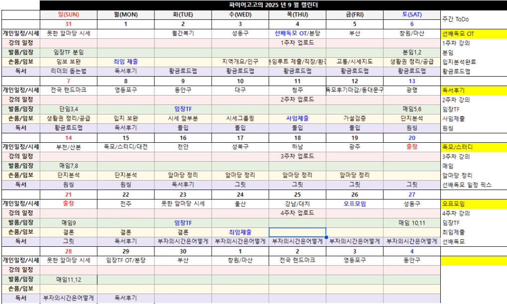 부족했던 8월 임장지도 마무리 잘 하겠습니다.