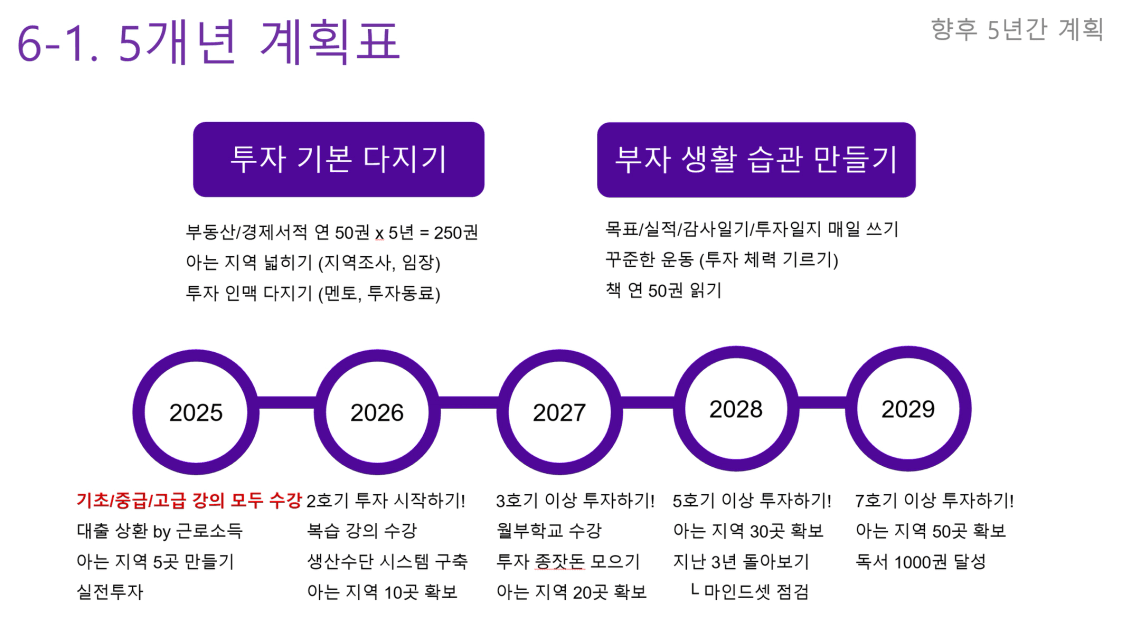 비전보드 실현을 위해 5년 단위로 20년 계획을 세워봅시다. (2025/ 2030/ 2035/ 2040/ 2045년)