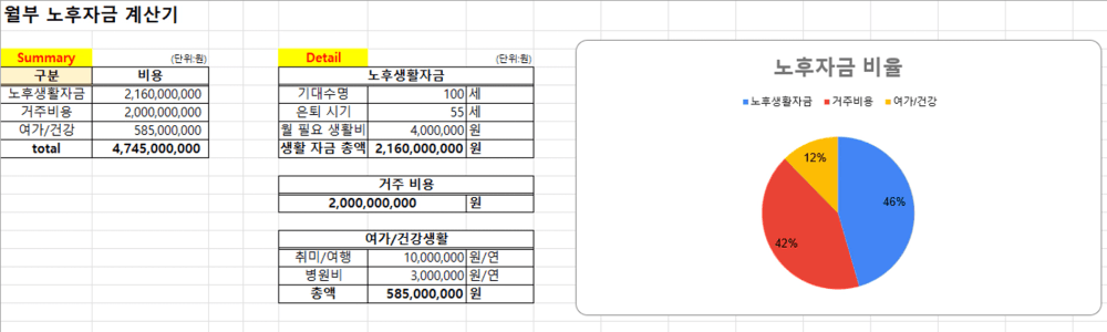노후 자금, 목표 금액 계산을 위한 은퇴시간 계산기,