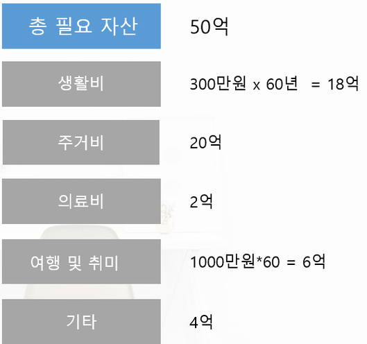 목표 금액 50억 (현재 나이 33세, 연저축액 2000만원)