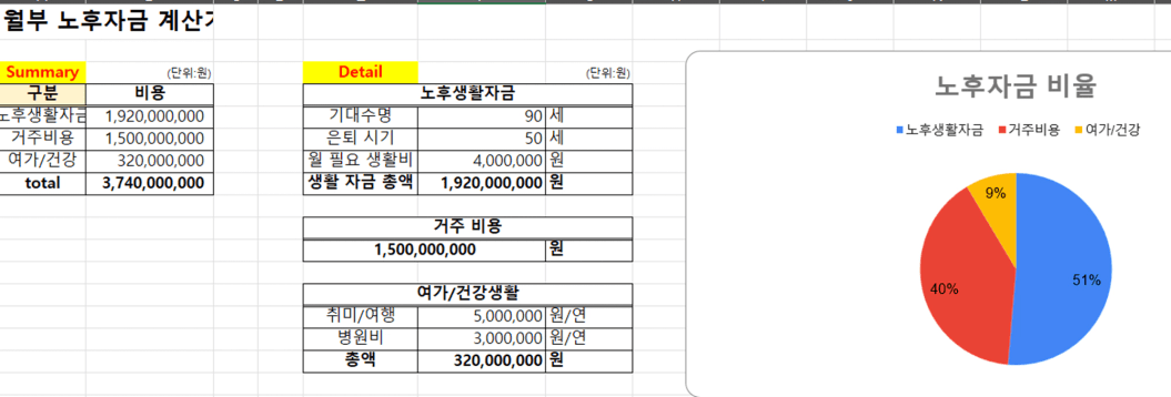 꿈을 실현하기 위해 필요한 노후 자금은 얼마인지 예산을 계산해보세요.