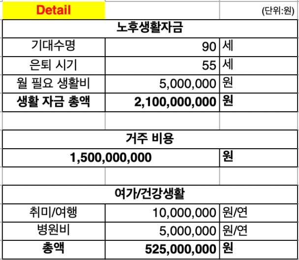 단기적 목표로 5년안에 최소 4억이상 달성 목표