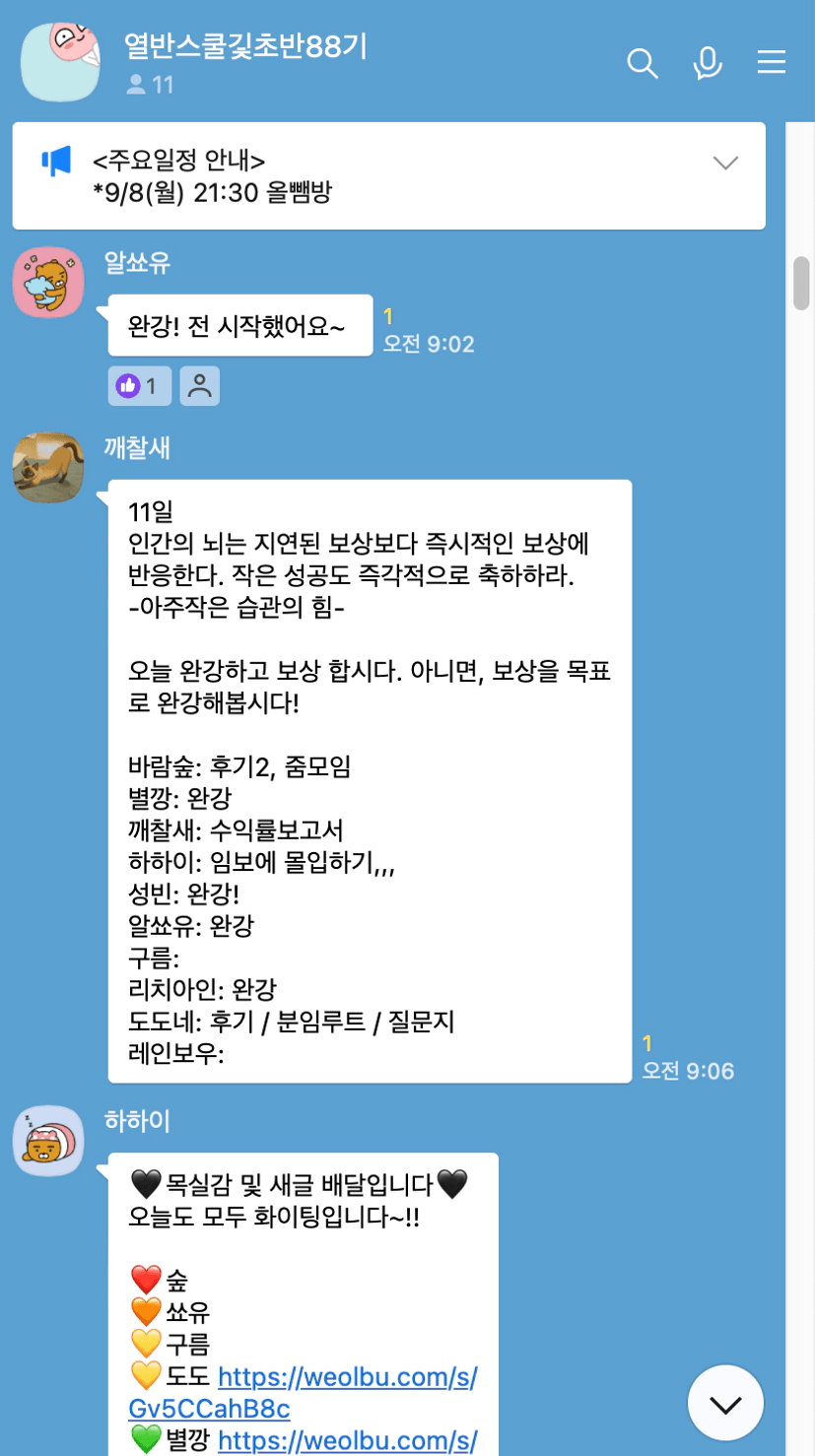 월부에서 부동산 투자공부를 마음먹었다면, 꼭 조모임을 신청하시길 권장드린다. 의지박약인 나도 조장님과 조원들과 함께 하니 든든하다! 앞으로 남은 강의들도 꼼꼼히 듣고, 과제까지 완벽히 해내서 오프라인 강의도 꼭 들어보고싶다.