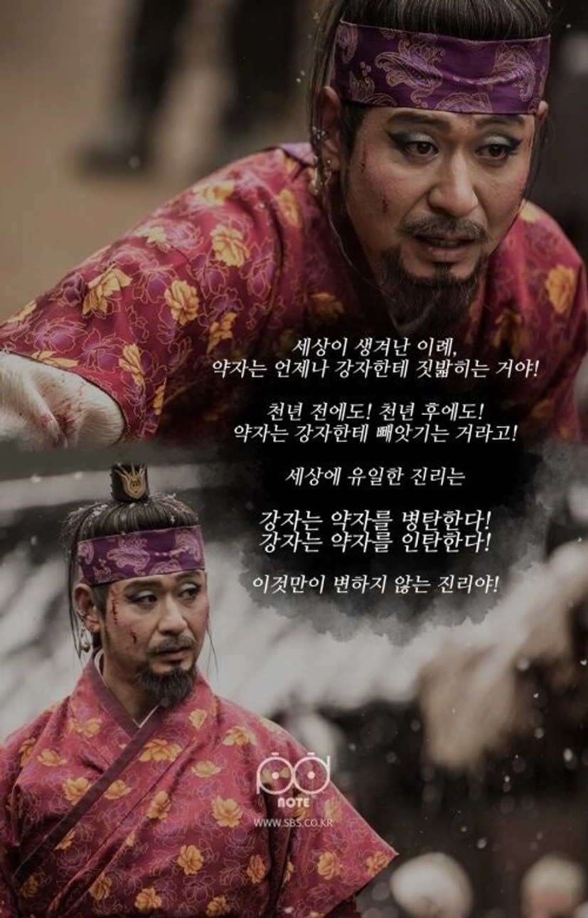 그런다  문득 예전 ‘육룡이 나르샤’에서 길태미가 마지막에 했던 말들이 생각이 났다.  ‘약자는 강자한테 빼앗긴다.’