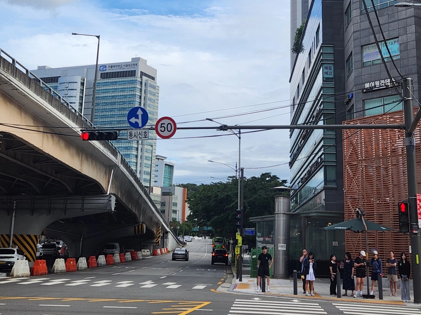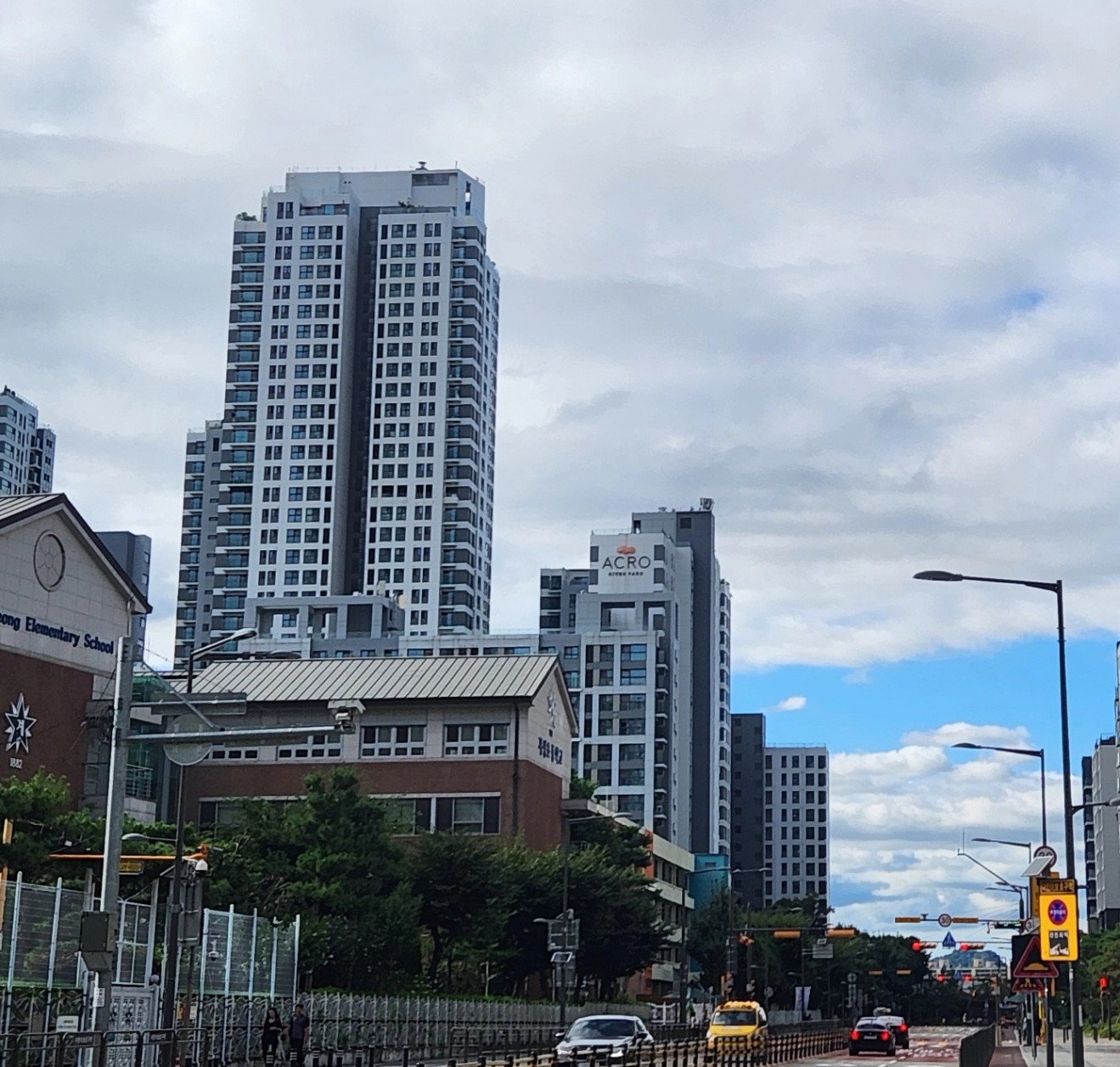 이렇게 새 아파트가 있고 탁 트인 차로와 깔끔한 공간!