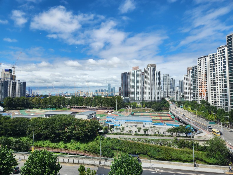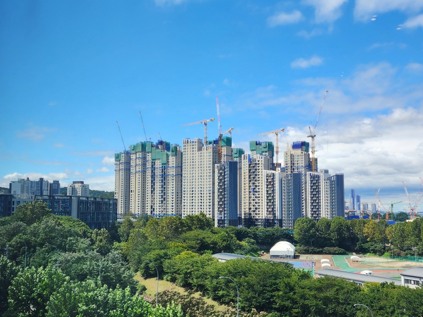 앞에 전부 신축아파트에 심지어 한쪽은 아파트가 지어지는 중이라 크레인이 잔뜩 있었습니다.