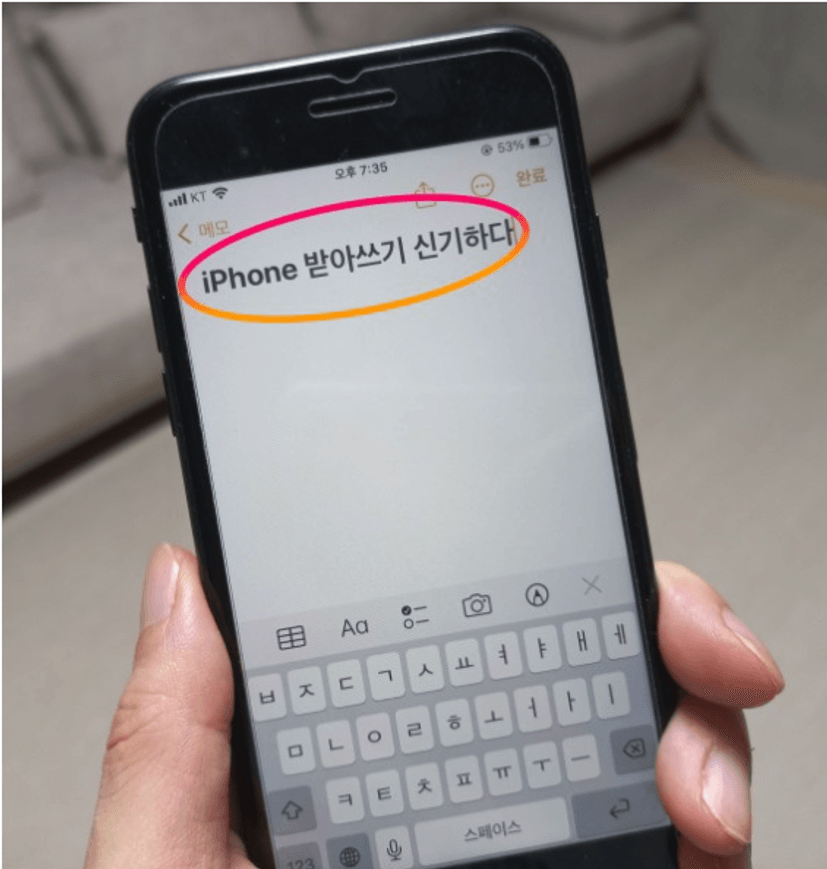 3. 메모장 사용을 진행해볼텐데요. 텍스트를 입력할 수 있는 상황이라면 키보드가 나타나실거에요.