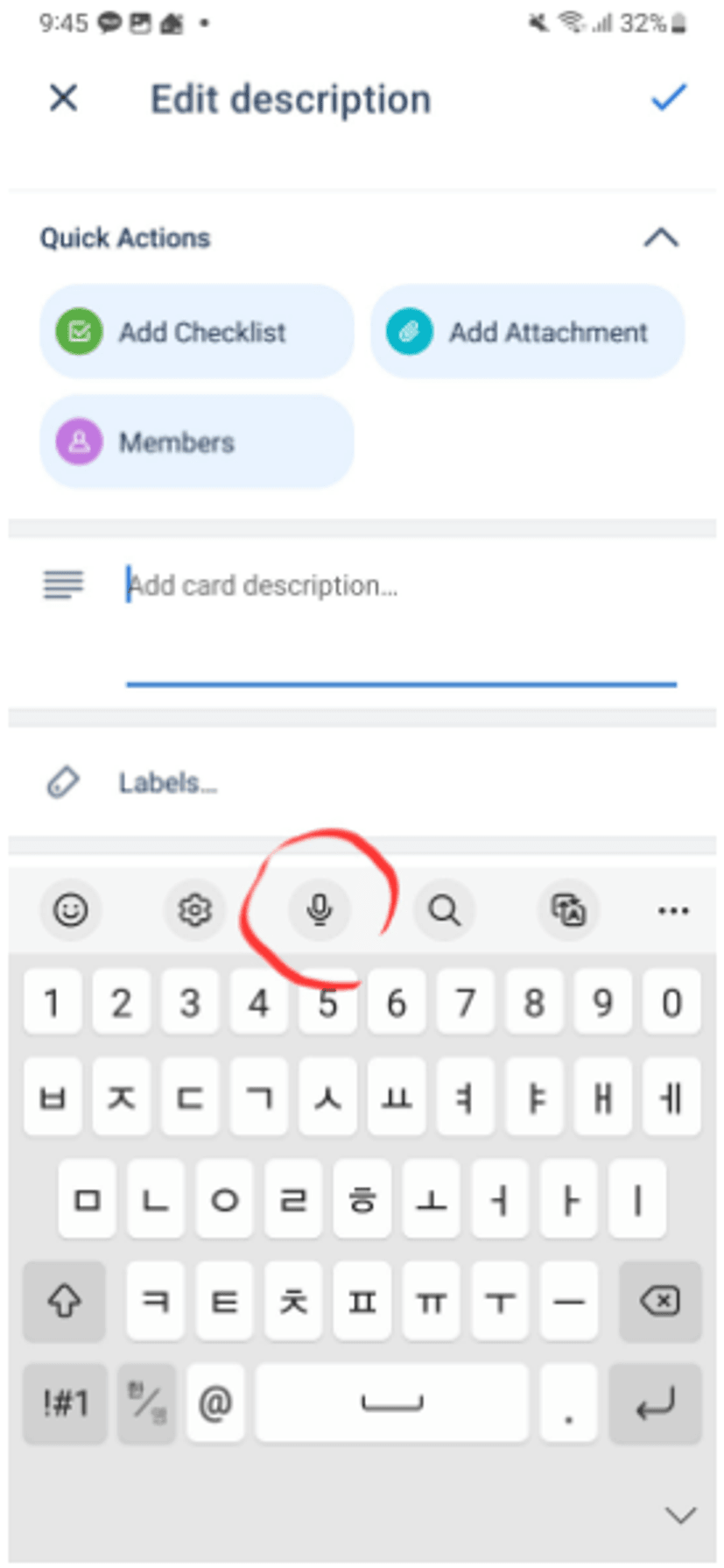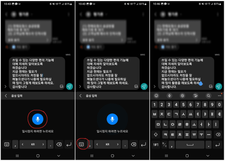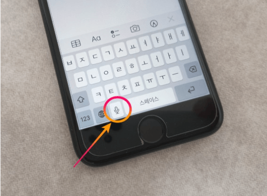 1. 키보드 창에 윗부분에 있는 마이크 표시 누르고요.
