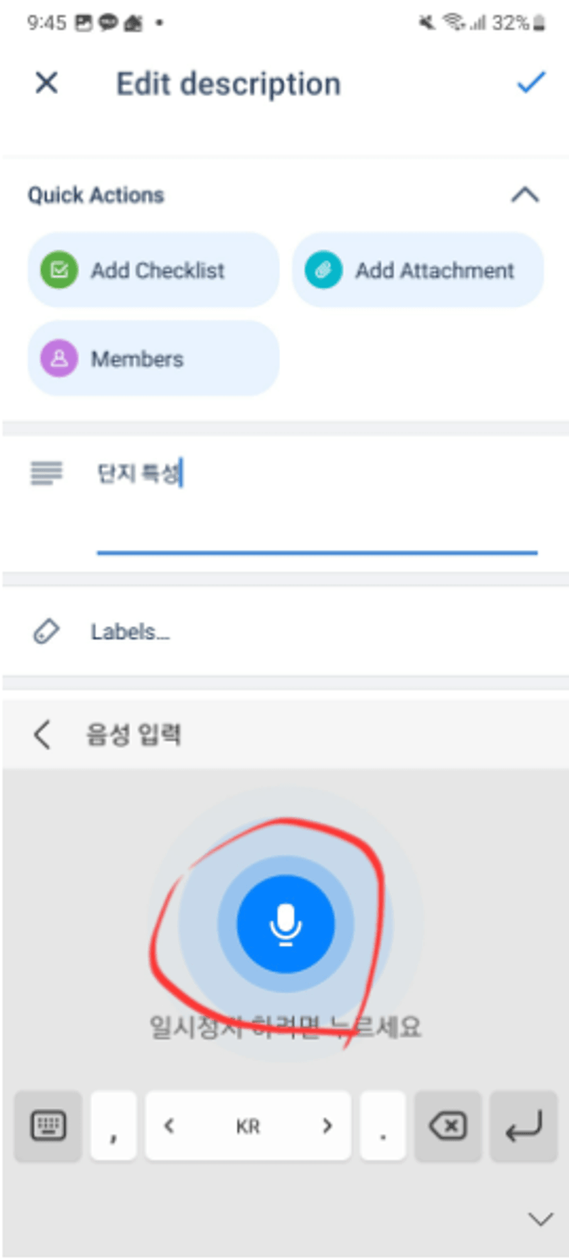 4. 마이크에 대고 원하는 단어를 이야기 해봅니다. 저는 '단지특성'이라고 남겼는데요.