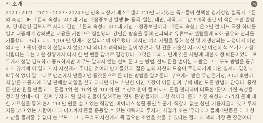 책 제목(책 제목 + 저자) : 돈의 속성 / 김승호