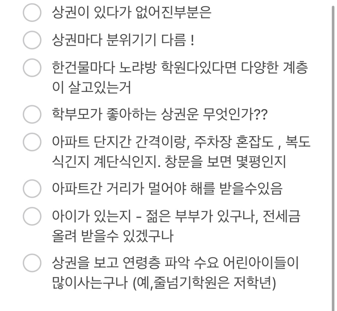 상권이나 환경을 처음에 어떤것들을 보면 좋을지 많이 안내해주셨고! 다음번에 혼자서도 보고싶은 부분을 체크리스트로 만들어놓았습니다!