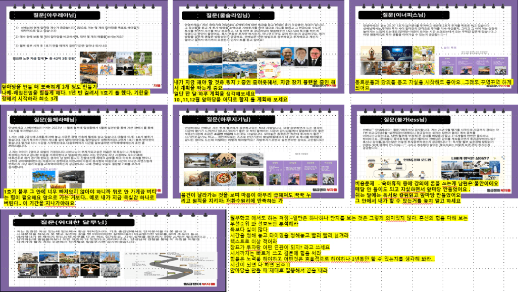 조원들의 비젼보드를 한 땀 한 땀 편집해서 질문을 만들어 오셨고 질문의 요지에 대해 한 번 더 정확히 질문하신 뒤 조언을 해주시는 방식으로 진행을 해 주셨어요 (제가 나중에 선배가 되면 이렇게 할꼬에욤 ㅎㅎ )