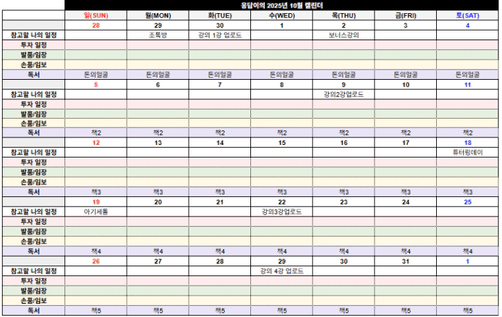 아직 미완성이지만 10월 계획을 세워보았습니다.