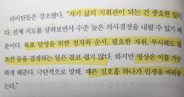 타이탄들의 매일의 작은 습관, 태도, 명상, 독서법등등을 더 주목하게 되었다.