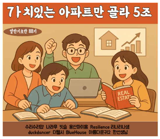 아파트를 선정→ 위치 파악→ 입지평가→ 수익률 분석→현장사진 → 투자결론