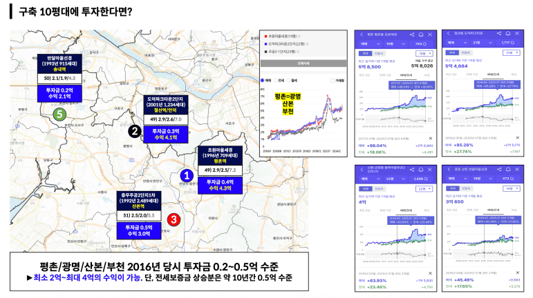 그 과정에서 가장 많이 배웠던 것은 수도권 4~5급지 지역과 지방 광역시의 가치에 대해 알아가며, 각 투자의 장단점을 파악하고 이를 적용하여 투자까지 해낼 수 있던 것입니다.