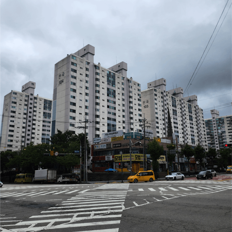 가장 많은 상권과 아파트들이 몰려있는 지역이었습니다. 아파트 입주 년차가 오래됐고(90년대) 대로변은 학원가 위주의 상권으로 균질성은 좋아 보였습니다.