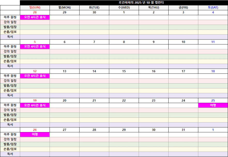 이런 식으로 자신의 한 달 일정을 짤 때,