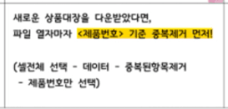 상품대장을 먼저 다운로드하시고 중복제거를 진행하셨는지 확인해주세여♡