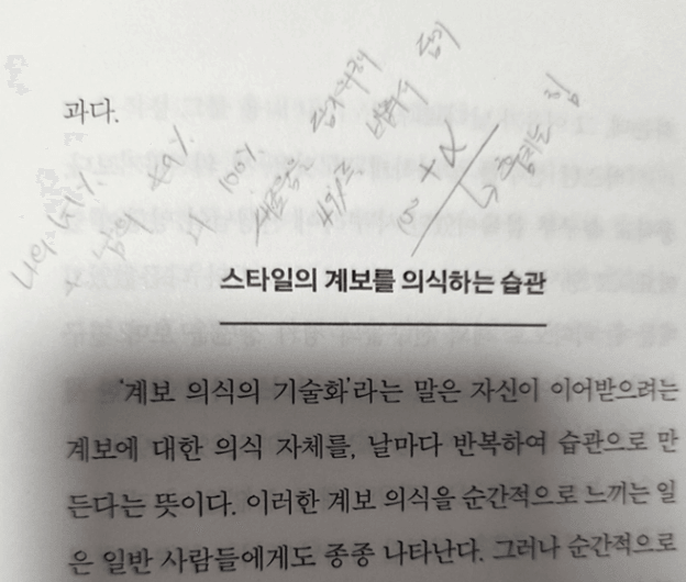 p141 숙달에 이르는 가장 이상적인 과정은 기초체력을 쌓은 후 자신의 버릇을 기술로 가꾸어 본인만의 스타일을 확립하는 것이다. 여기에서 말하는 ‘스타일’은 자기의 다양한 기술을 하나로 통합하는 원리다.