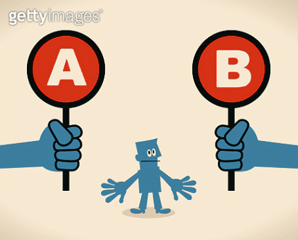 출처 : https://m.gettyimagesbank.com/view/Businessman-with-two-options-to-choose-between-A-or-B/944840704