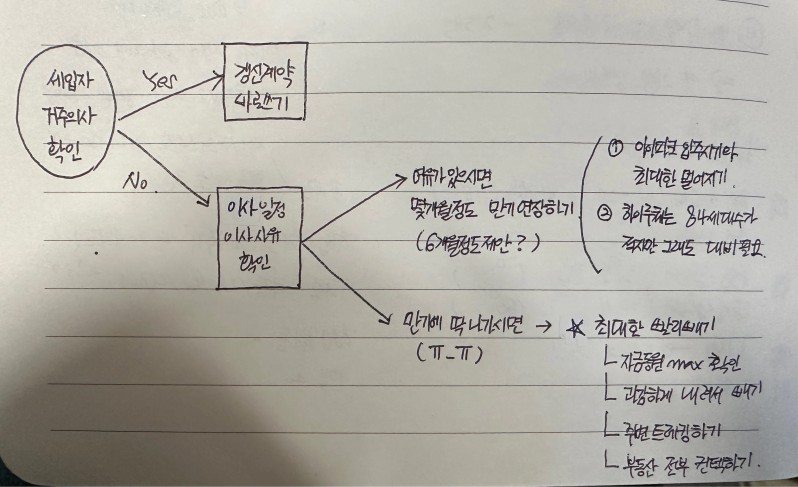 3) 세입자분과 대화 전 아래와 같은 시나리오를 생각해봤고 그에 대한 대응안을 떠올려보고 있습니다