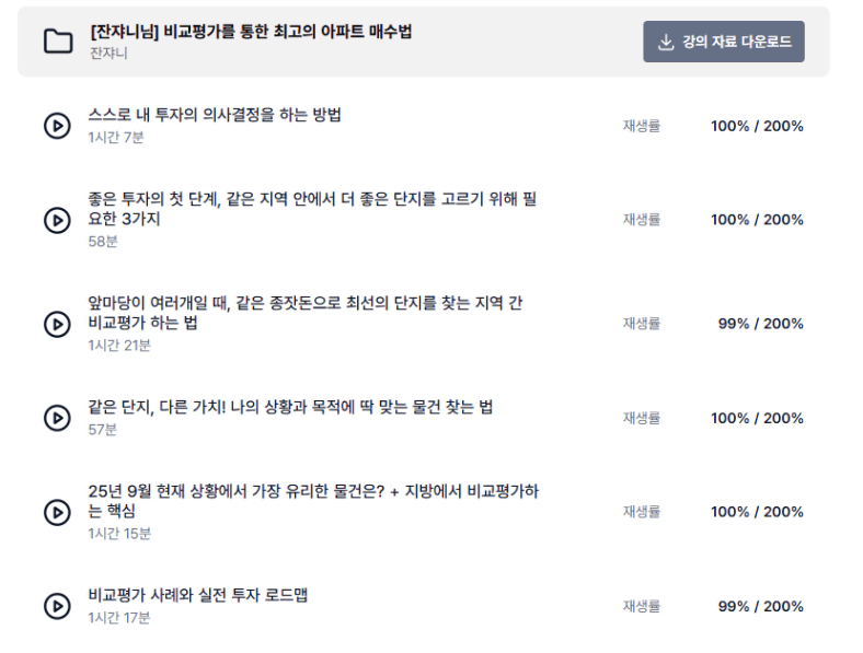 쟌자니님의 “비교평가를 통한 최고의 아파트 매수법” 강의