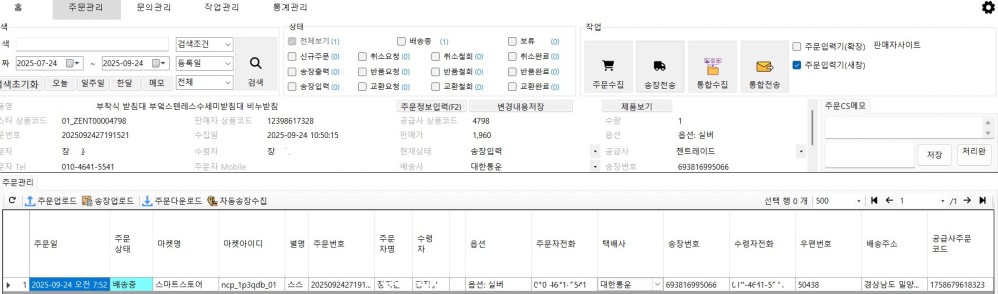 떨리는 맘으로 민군님 영상을 다시 시청하면서 첫주문을 발주하고 송장전송까지 마쳤습니다.