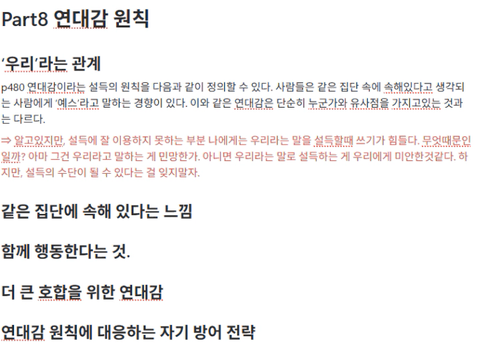 핵심 키워드 3가지 뽑아보기 : #일관성 # 상호성 # 낮은공 #연대감