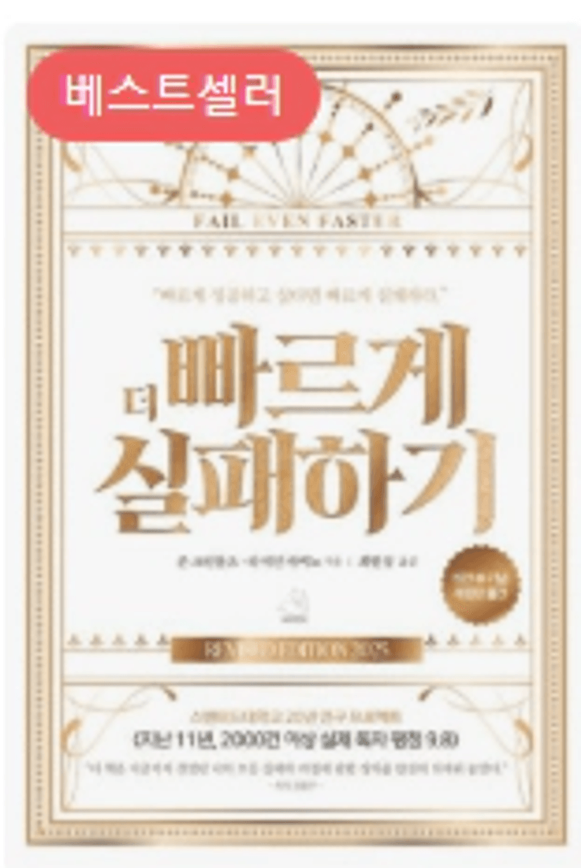 : 『더 빠르게 실패하기 Fail Even Faster』는 존 크럼볼츠(John Krumboltz)와 라이언 바비노(Ryan Babineaux)가 공동 저술한 자기계발서로, 빠른 시도와 실패를 촉구하는 책이다. 완벽함을 추구하기보다, 즉각 실행 가능한 ‘작은 행동 중심’을 다룬다.