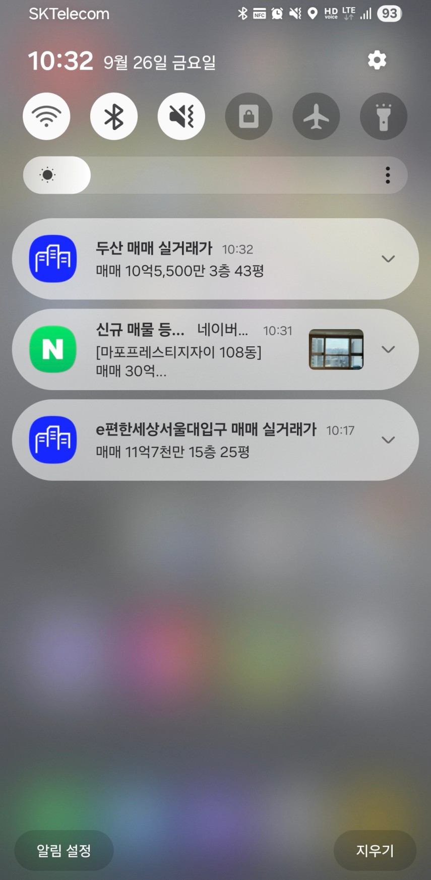실거래 알림은 실거래 등록 후 이루어지는 것입니다.