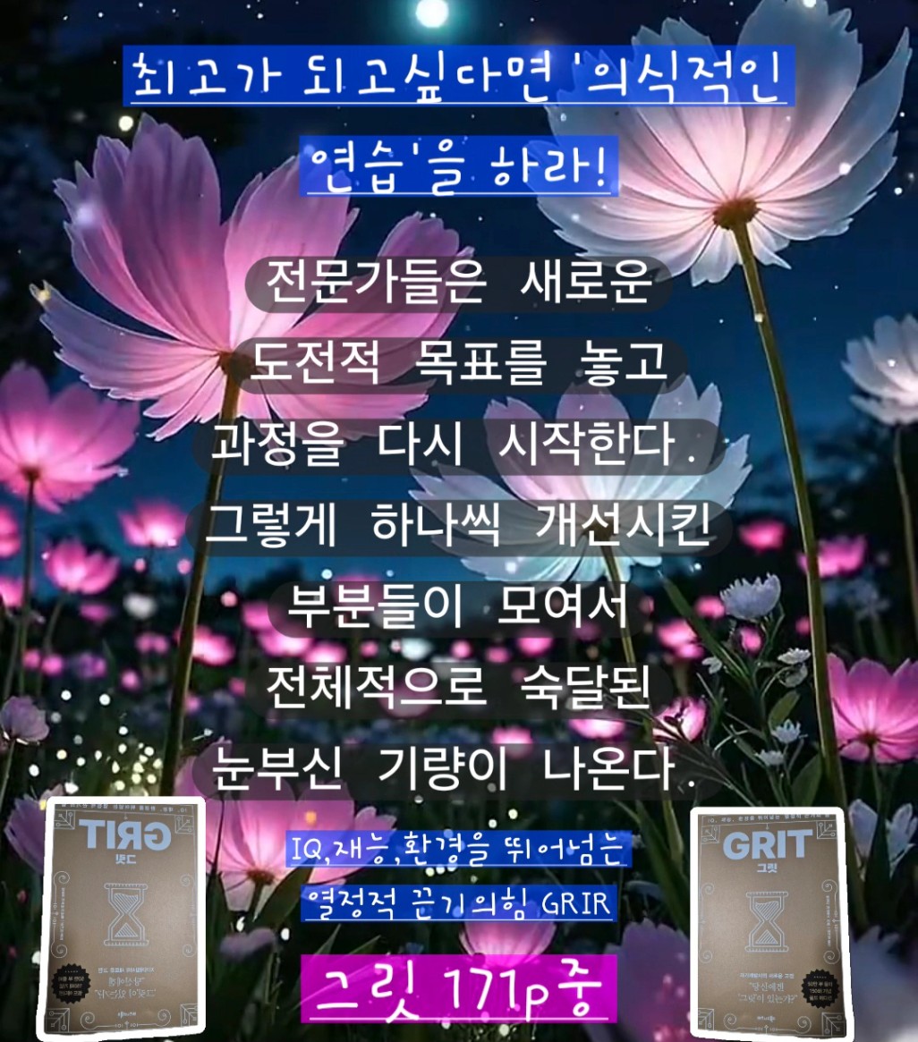 성공은 재능이 아니라 꾸준히 해내는 힘에서 나온다  기억하면서 주우님도 자신이그릿책을좋와하며 좋와하는이유에대하여 자신도 재능일도없는상황에서 노력으로 10년차투자자가된것이기에 그릿이란 책이  도움되는책이라고 추천하셨습니다
