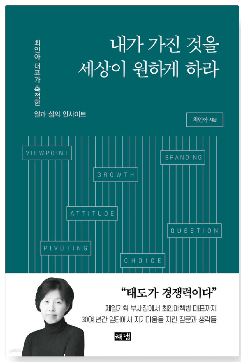 30여 년간 크리에이티브의 최전선인 광고업계에서 자기만의 색깔로 인정받고 성과를 냈던 최인아 전 제일기획 부사장. 첫 일터에서 스스로 물러나 8년째 자신의 이름을 딴 ‘최인아책방’을 운영하는 지금까지 관심의 촉수는 늘 이 질문에 닿아 있었다. 오랜 시간 현역으로 일하며 자신을 파워 브랜드로 성장시켜올 수 있었던 그만의 관점과 태도를 신간『내가 가진 것을 세상이 원하게 하라』에 담고자 한다.