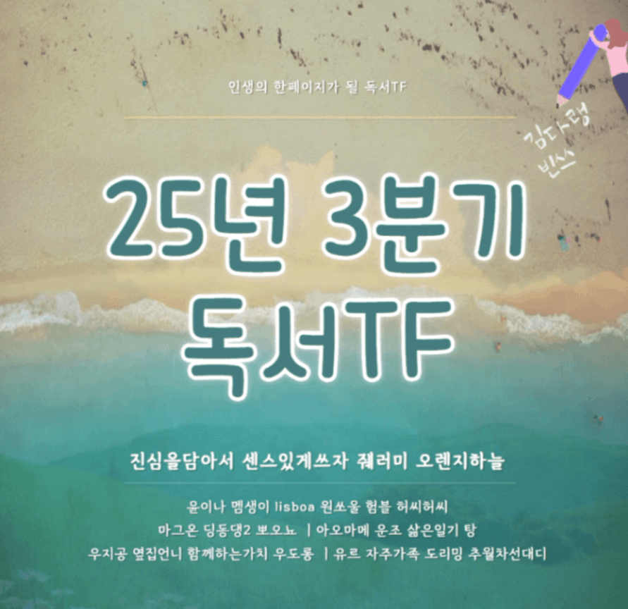 그리고 독서TF 1조 독서에 ㅇ1렇게 진심을 담아서 한다랭 리스보아 조장님, 댕님, 뽀님 함께 해주셔서 정말 즐겁고 행복했습니다.