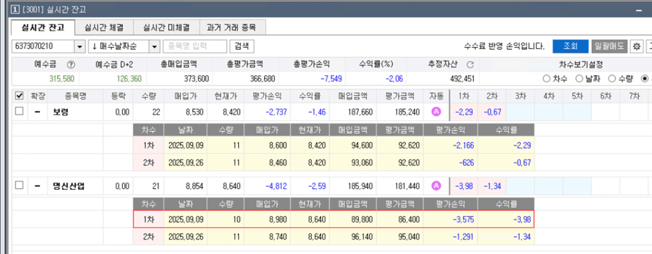차수별 매수매도 기준을 약간 수정해서 2차수 자동 매수되는지 테스트까지 해 봤다.