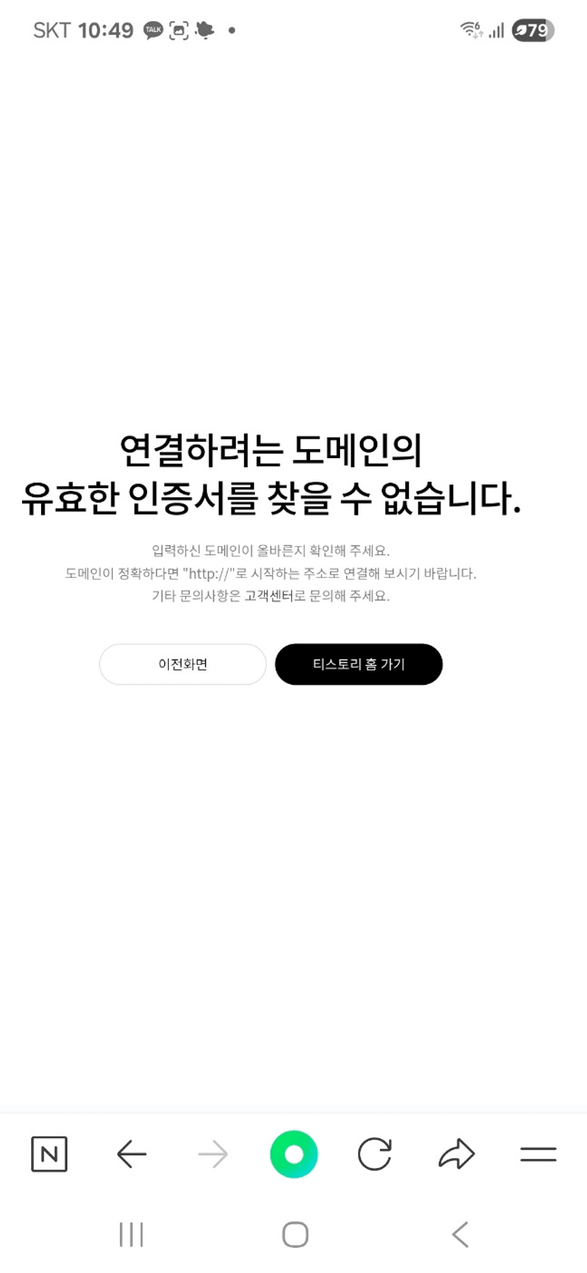 인증서 문제는 시간이 지나면 자연스럽게 해결이 됩니다 ^^ 인증이 될 때 까지 하루 - 최대 일주일까지 시간이 소요될 수 있답니다.